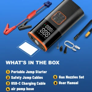 5000A Peak 12V Car Jump Starter & Air Compressor – Emergency Power Station with a Storage Bag